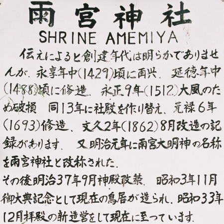 | ▼説明の看板(雨宮神社社叢) | ▼説明の看板(雨宮神社石段の由来) | |