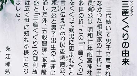 | ▼説明の看板(「三産くぐり」) | ▼「三産くぐり」入口(南西より望む) | |