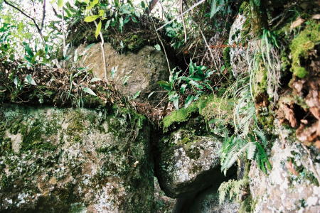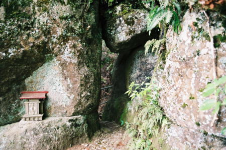 | ▼「三産くぐり」及び祠(北より下部を望む) | ▼「三産くぐり」(北より上部を望む) | |
