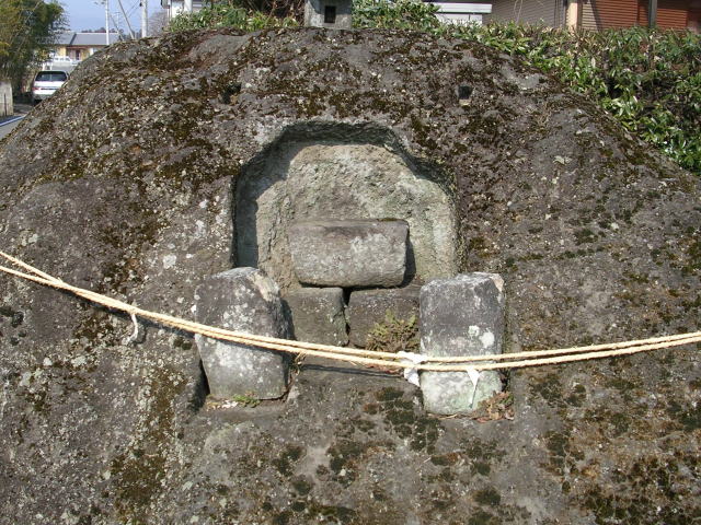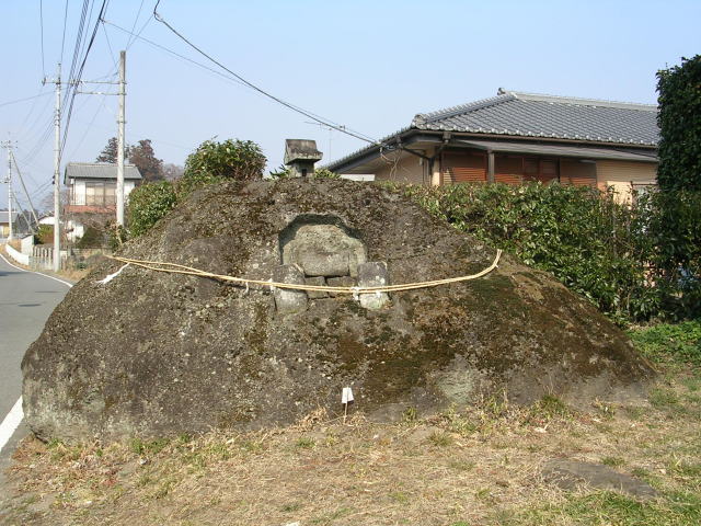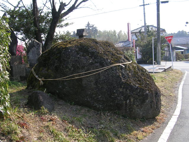 | 群馬県前橋市鼻毛石町「八幡神社」の「旧・大門」に存在する「鼻石」 (北緯36度26分28秒・東経139度10分14秒(誤差含む)) ▼(南より望む) |