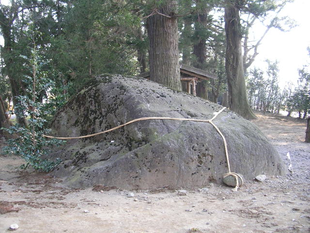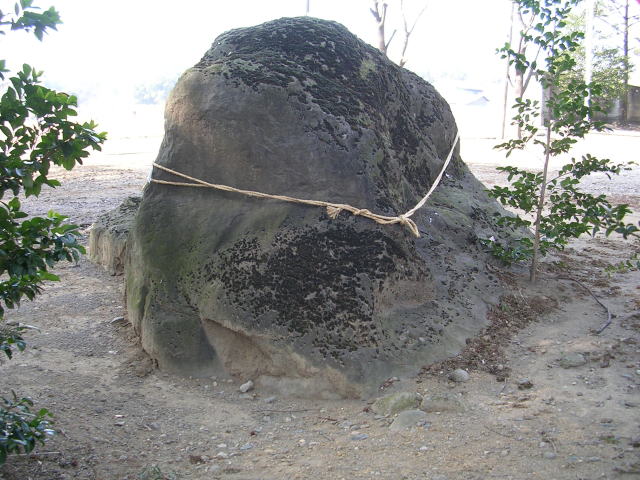 | 鼻毛石八幡神社・「硯石」 ▼(西南西より望む) |