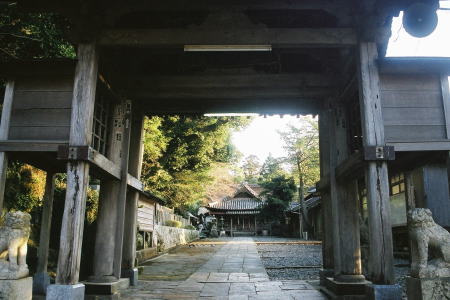▼式内社「八幡宮神社」神門より拝殿を望む