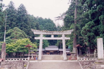 飛騨一之宮水無神社境内入口より拝殿本殿を望む