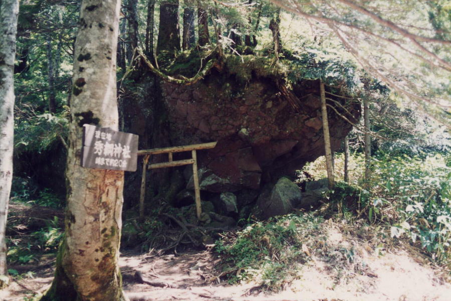「焼岳」北東麓の登山道脇に存在する「秀綱神社」・巨岩群