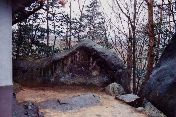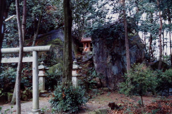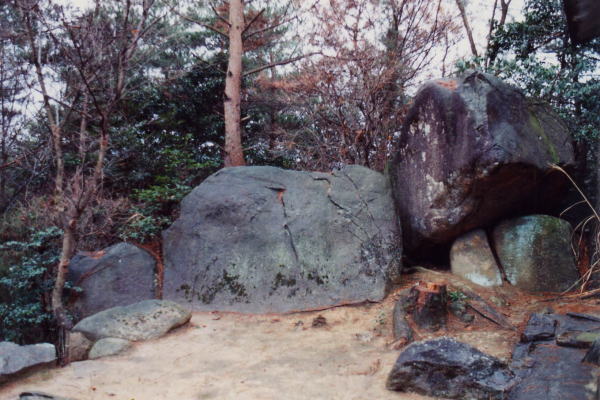 | 舟岡山(152M)山麓に鎮座する「市辺神社」北の巨岩群(社殿アリ) |