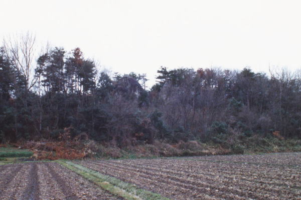 | 「紅かす山」南西の舟岡山(152M)山麓に鎮座する 「市辺神社」北の巨岩群(祠アリ) |