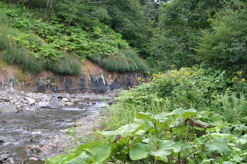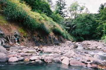 ▼「音更川」沿いに存在する「岩間温泉」と源泉群