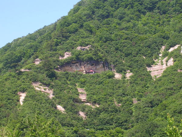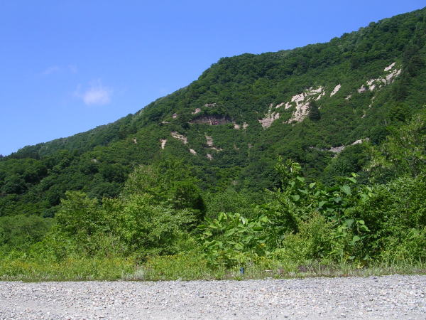 山形県最上郡大蔵村「銅山川(烏川)」左岸の道より「地蔵倉」を望む