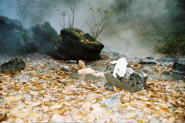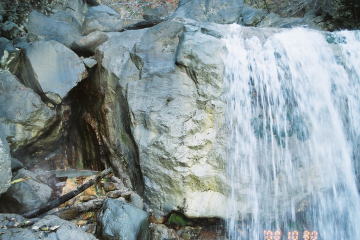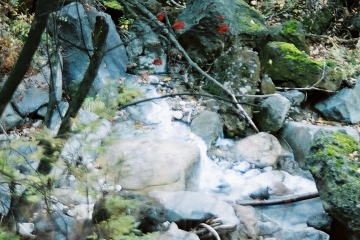 ▼「常布の滝下温泉」上流の別源泉(硫黄泉系)