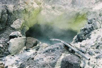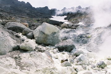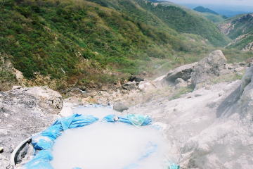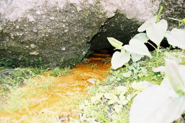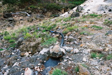 ▼「かもしか温泉跡」の浴槽跡へ引かれた