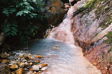 ▼「大倉沢」渡渉地点の「冷鉄泉系」の源泉