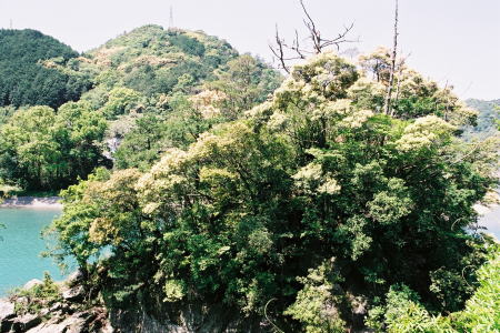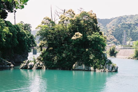 | 清暑島(河内神社)を「古座川」下流より望む ▼(北北西より望む) |