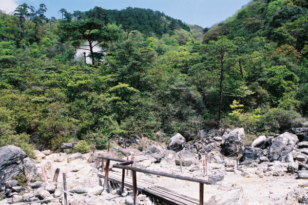 ▼栗野岳温泉「八幡地獄」源泉下流部