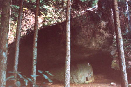 | 「桝形石」 大岩壁に扉石をつけた「桝形石室」が設けられている |