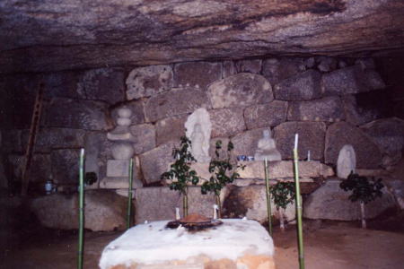「桝形石室」のアップ 「応永」の墨書のある木製円鏡が安置されているらしい? |