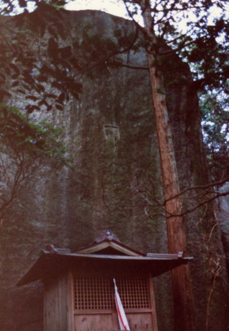 | 岩屋寺「岩屋」 正面に室町時代前期の作とみられる金剛界大日如来の磨崖仏が 彫付けられている |