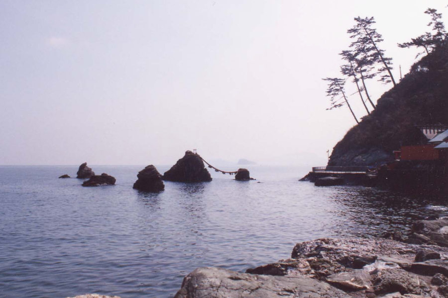 二見興玉神社・本殿(向かって右)及び「夫婦岩」(向かって左)
