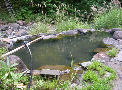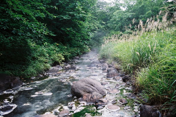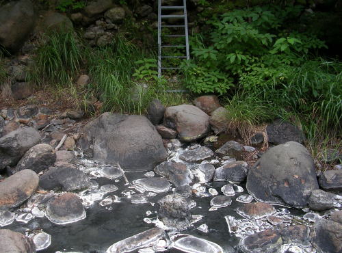 ▼「見張りの湯」裏より、沢が温泉となった「湯ノ沢」