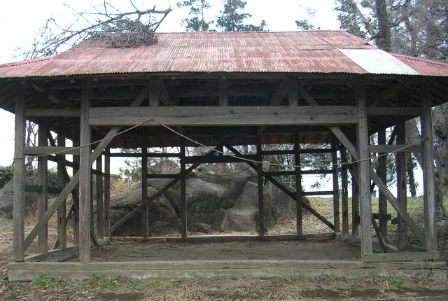| 「雷電神社」社殿及び「七ツ石」 (北緯36度23分56秒・東経139度11分17秒(誤差含む)) ▼(東より望む) |
