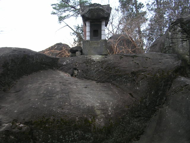 | 「七ツ石」及び祠 ▼(北より望む) |