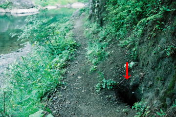 の手前(南側)に存在する「別源泉」▼