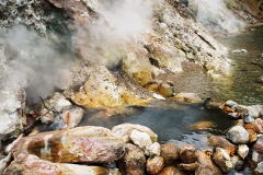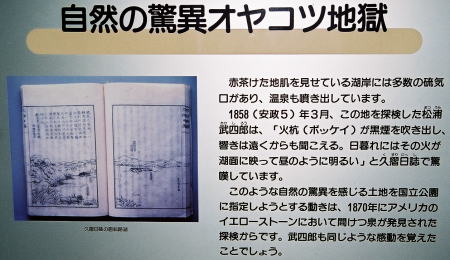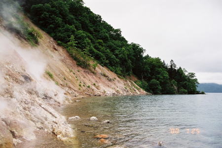 | ▼展望台より屈斜路湖と「オヤコツ地獄」を下に望む | ▼「オヤコツ地獄」 | ||