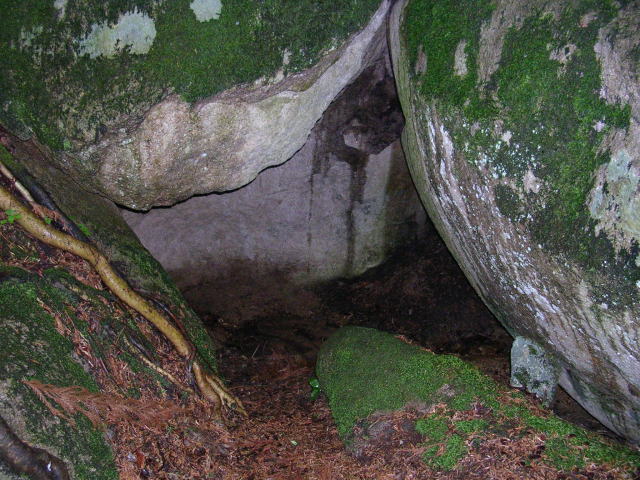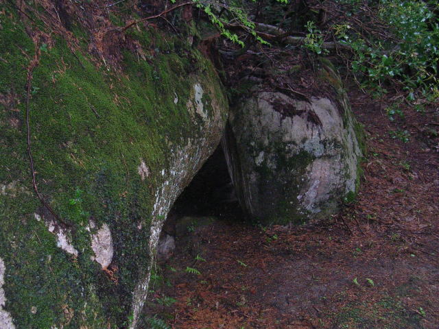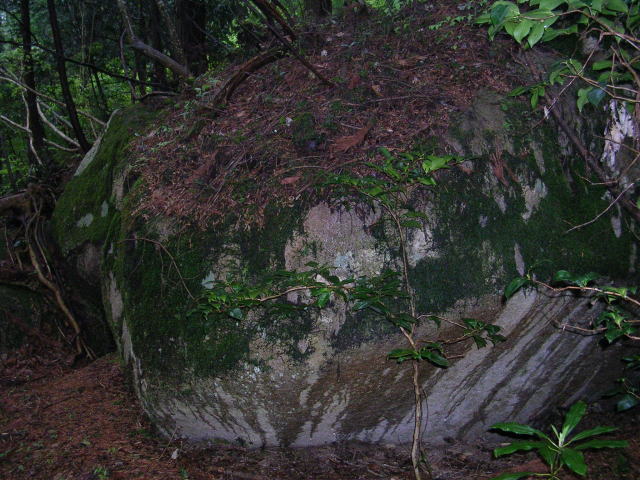 | 「志都岩屋神社」巨岩群(「くぐり岩」上部) ▼(西南西より望む) |