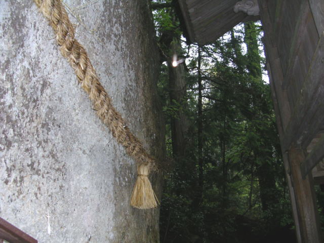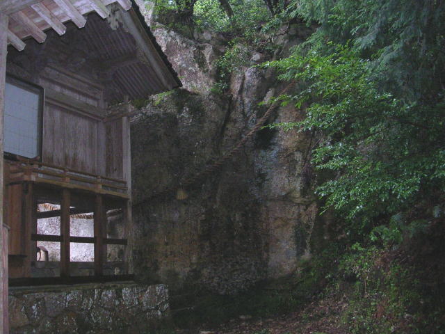 | 「志都岩屋神社」本殿及び「鏡岩」(向かって左) ▼(南西より望む) |