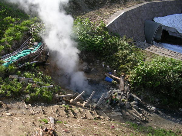 | 岩手県八幡平市「県道318号線」沿いの 「太古の息吹南」源泉(2000年)▼ |