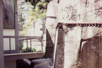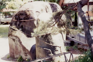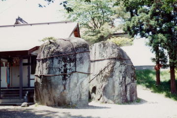 三ッ石神社・拝殿本殿と「鬼の手形石」