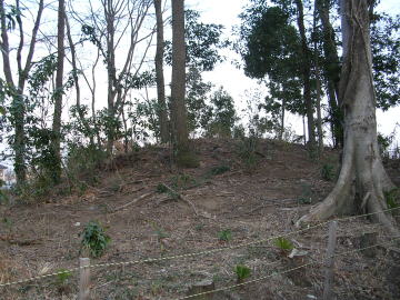 群馬県伊勢崎市境米岡149 「米岡神社」境内の「古墳」(名称不明) ▼(北西より望む)(03・21) |