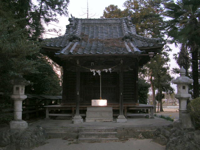 | 群馬県伊勢崎市境米岡149「米岡神社」・社殿 ▼(南より望む)(03・21) |