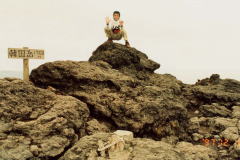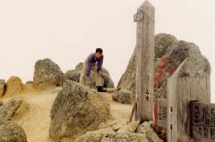 06・男体山(2486M) (栃木) 1991・08・01 最高地点→△?方?M 「登拝大祭」の夜間登山で登頂。 三角点より2M高い大岩の上 にも登りました。 |