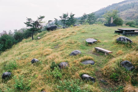 | 巨岩A・Bを含む巨岩群(展望台のある南東方向より北西方向を望む) |